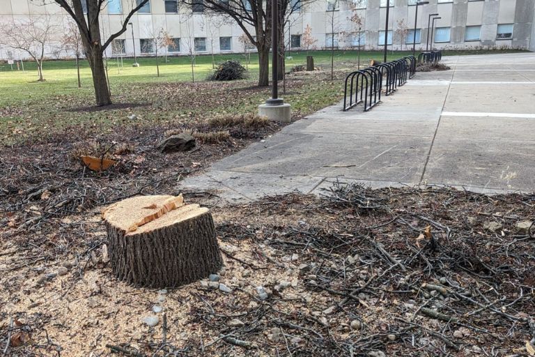 The IU Indianapolis Campus Facility Services (CFS) Grounds team actively works to incorporate sustainable practices into their daily care of the campus landscape. These initiatives have increased the operational efficiency of the campus while also reducing the long-term impact of our campus footprint and providing a thriving, urban habitat for pollinators, birds, and other creatures.